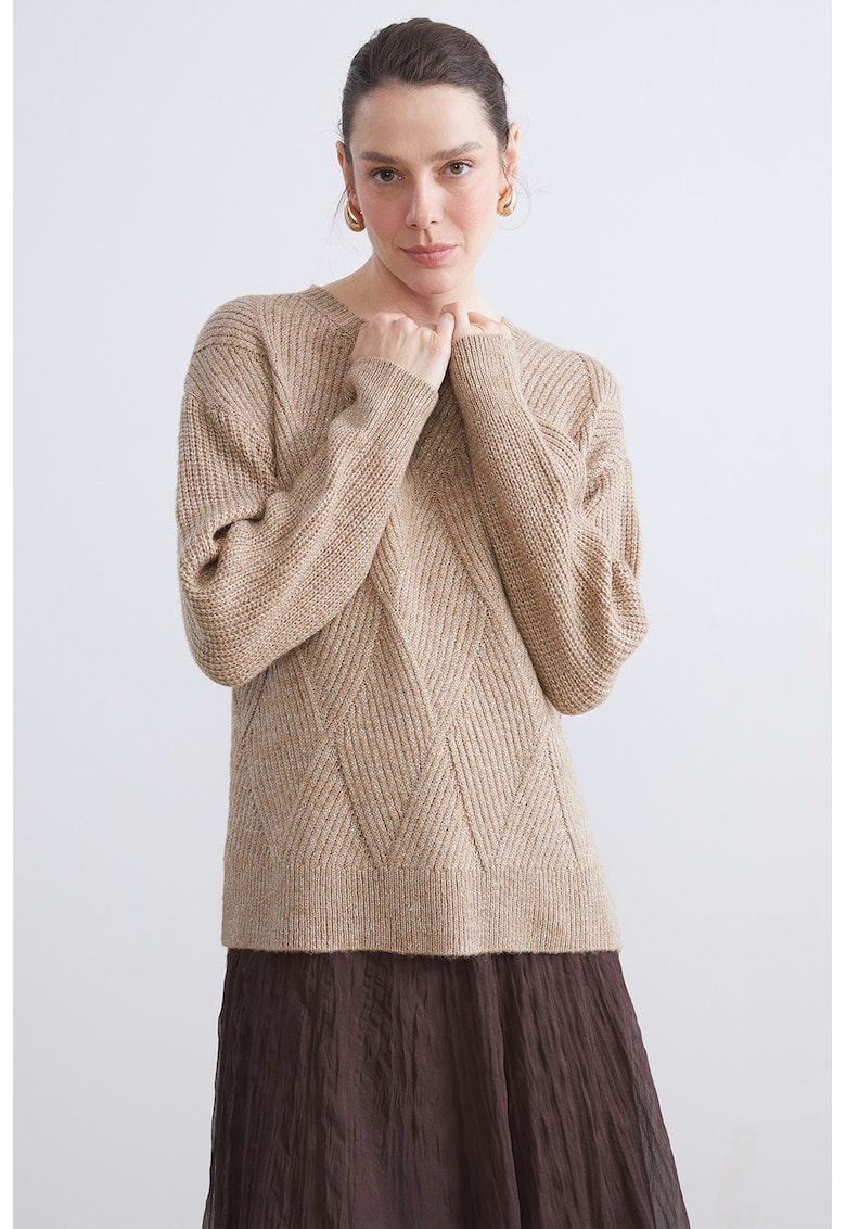 Caracteristici Tip produs: pulover Culoare: bej melange Imprimeu: uni Material: sintetic
