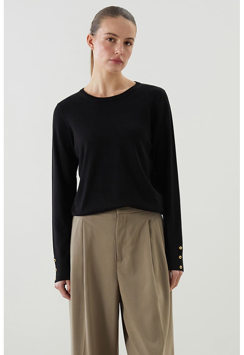 - viscoza Model: rotund Croiala: regular fit Sistem inchidere: fara inchidere Decolteu: rotund Lungime maneca: maneca lunga Compozitie Exterior: 70% viscoza