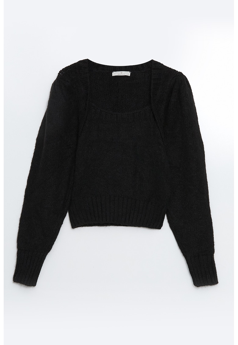 Caracteristici Tip produs: pulover Culoare: negru Imprimeu: uni Material: poliester