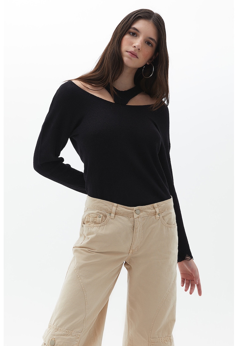 - acril Model: decolteu la baza gatului Croiala: slim fit Sistem inchidere: fara inchidere Lungime maneca: maneca lunga Compozitie Exterior: 85% acrilic