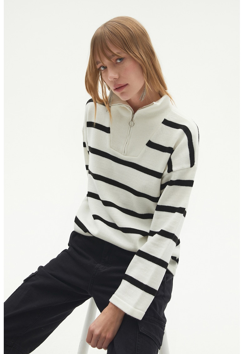 - tricot Model: guler inalt Croiala: regular fit Sistem inchidere: fermoar Lungime maneca: maneca lunga Detalii: fenta scurta cu fermoar Compozitie Exterior: 100% acrilic