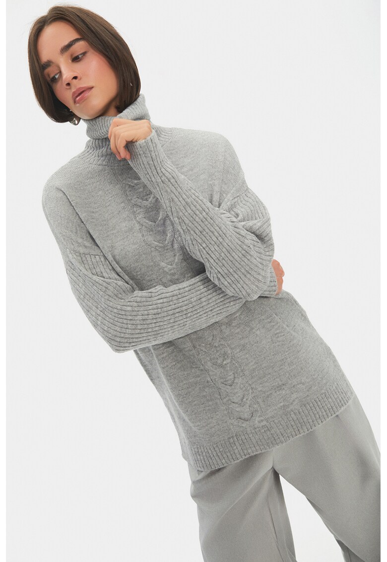 - acril Model: guler inalt Croiala: regular fit Sistem inchidere: fara inchidere Lungime maneca: maneca lunga Tip maneca: ampla Compozitie Exterior: 76% acrilic