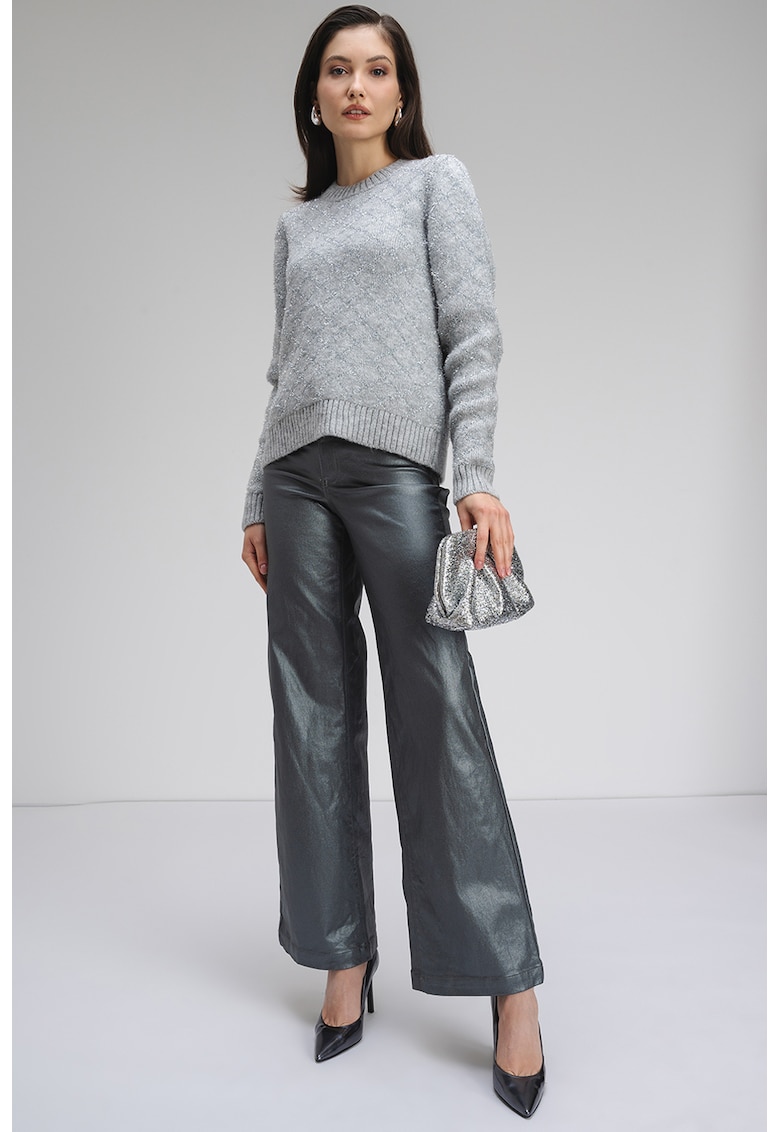 - argintiu Imprimeu: uni Material: sintetic Model: rotund Croiala: regular fit Sistem inchidere: fara inchidere Lungime maneca: maneca lunga Detalii: insertii stralucitoare Compozitie Exterior: 63% acrilic