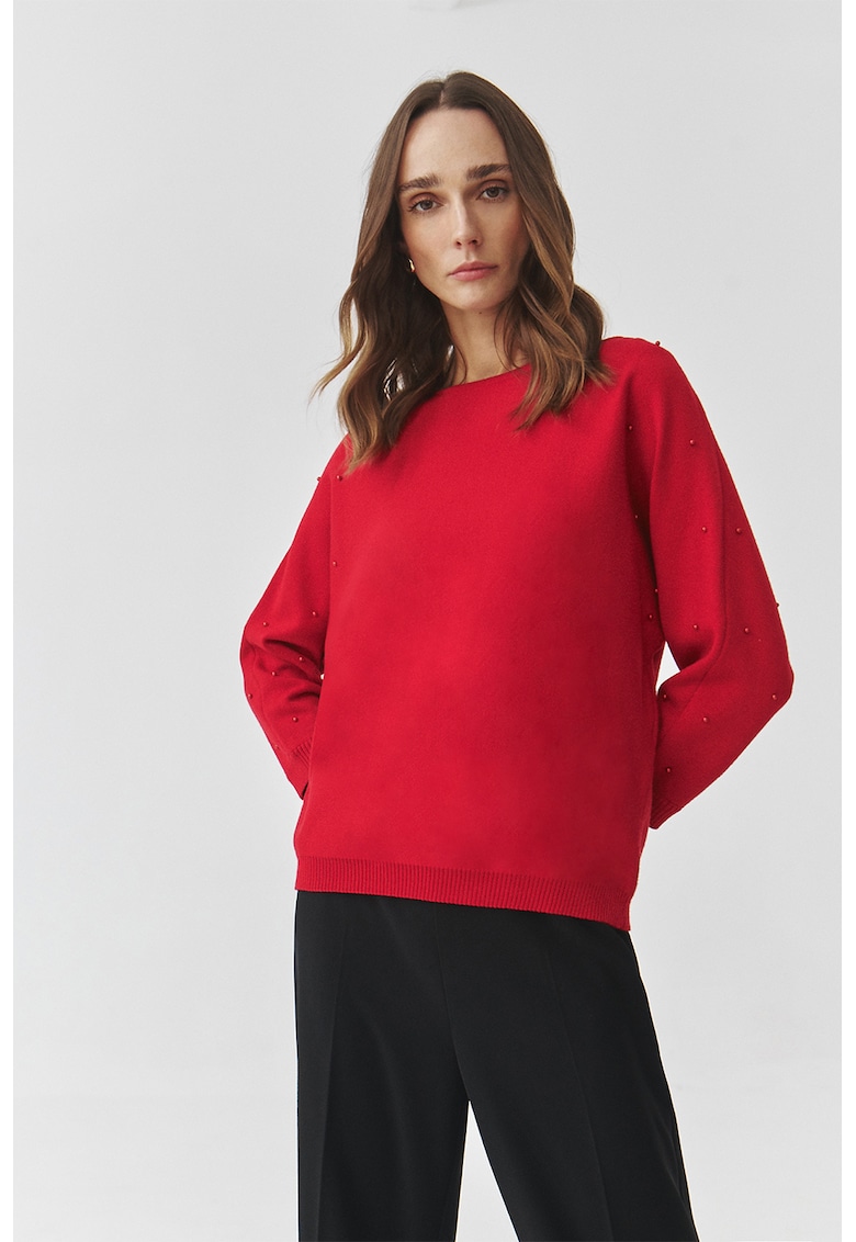 Caracteristici Tip produs: pulover Culoare: rosu Imprimeu: uni Material: sintetic