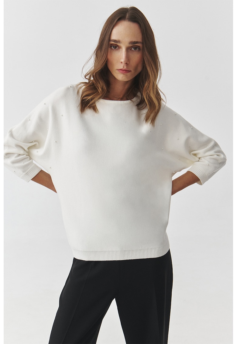 Caracteristici Tip produs: pulover Culoare: alb optic Imprimeu: uni Material: sintetic