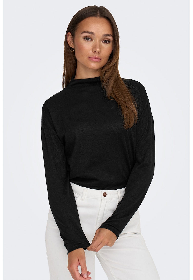 Caracteristici Tip produs: pulover Culoare: negru Imprimeu: uni Material: sintetic Model: rotund Croiala: regular fit Sistem inchidere: fara inchidere Lungime maneca: maneca lunga Tip maneca: cazuta Detalii: aspect de tricot fin Compozitie Exterior: 95% poliester