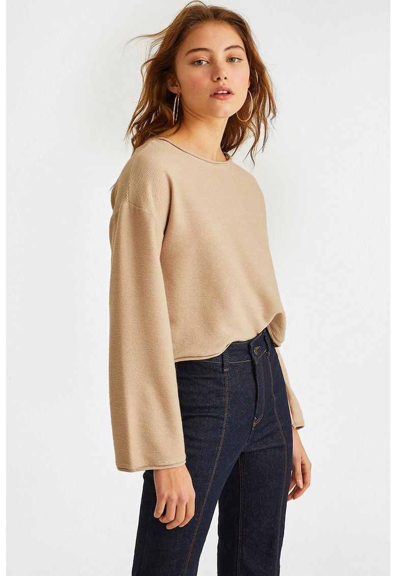 Caracteristici Tip produs: pulover Culoare: maro nisip Imprimeu: uni Material: poliester Model: decolteu la baza gatului Croiala: lejer Sistem inchidere: fara inchidere Lungime maneca: maneca lunga Tip maneca: ampla Compozitie Exterior: 95% poliester