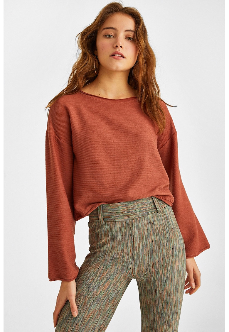 Caracteristici Tip produs: pulover Culoare: maro cognac Imprimeu: uni Material: poliester Model: decolteu la baza gatului Croiala: lejer Sistem inchidere: fara inchidere Lungime maneca: maneca lunga Tip maneca: ampla Compozitie Exterior: 95% poliester