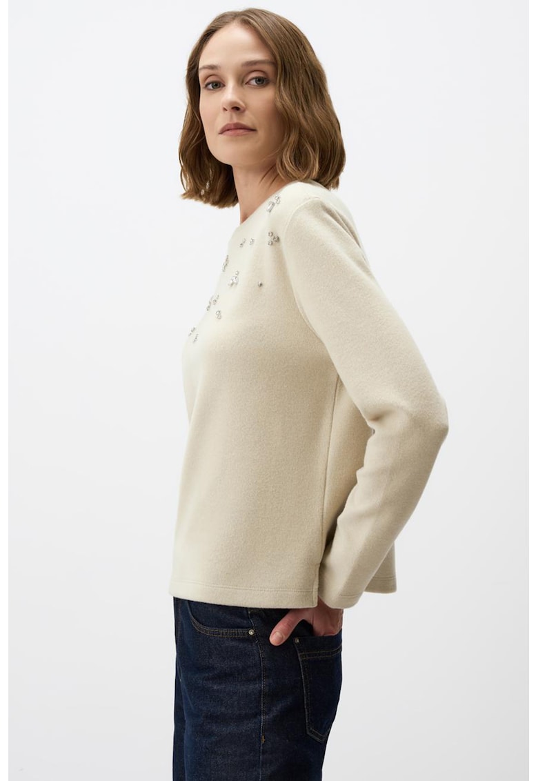 - bumbac Model: decolteu la baza gatului Croiala: regular fit Sistem inchidere: fara inchidere Lungime maneca: maneca lunga Detalii: strasuri Compozitie Exterior: exterior: 71% poliester