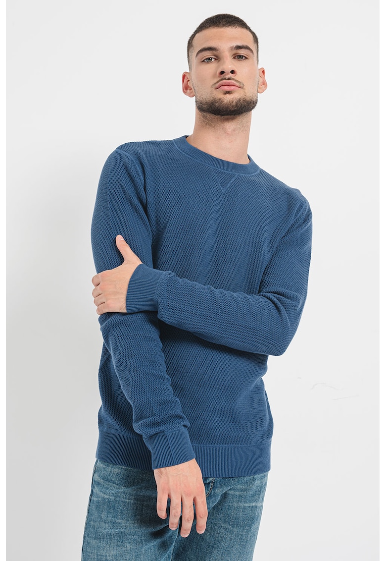 Caracteristici Culoare: albastru inchis Imprimeu: uni Material: bumbac Croiala: regular fit Sistem inchidere: fara inchidere Model: decolteu la baza gatului Decolteu: striat Lungime maneca: maneca lunga Compozitie Exterior: 100% bumbac Info model Modelul poarta un produs de marimea M. Marimi model: 190 cm inaltime