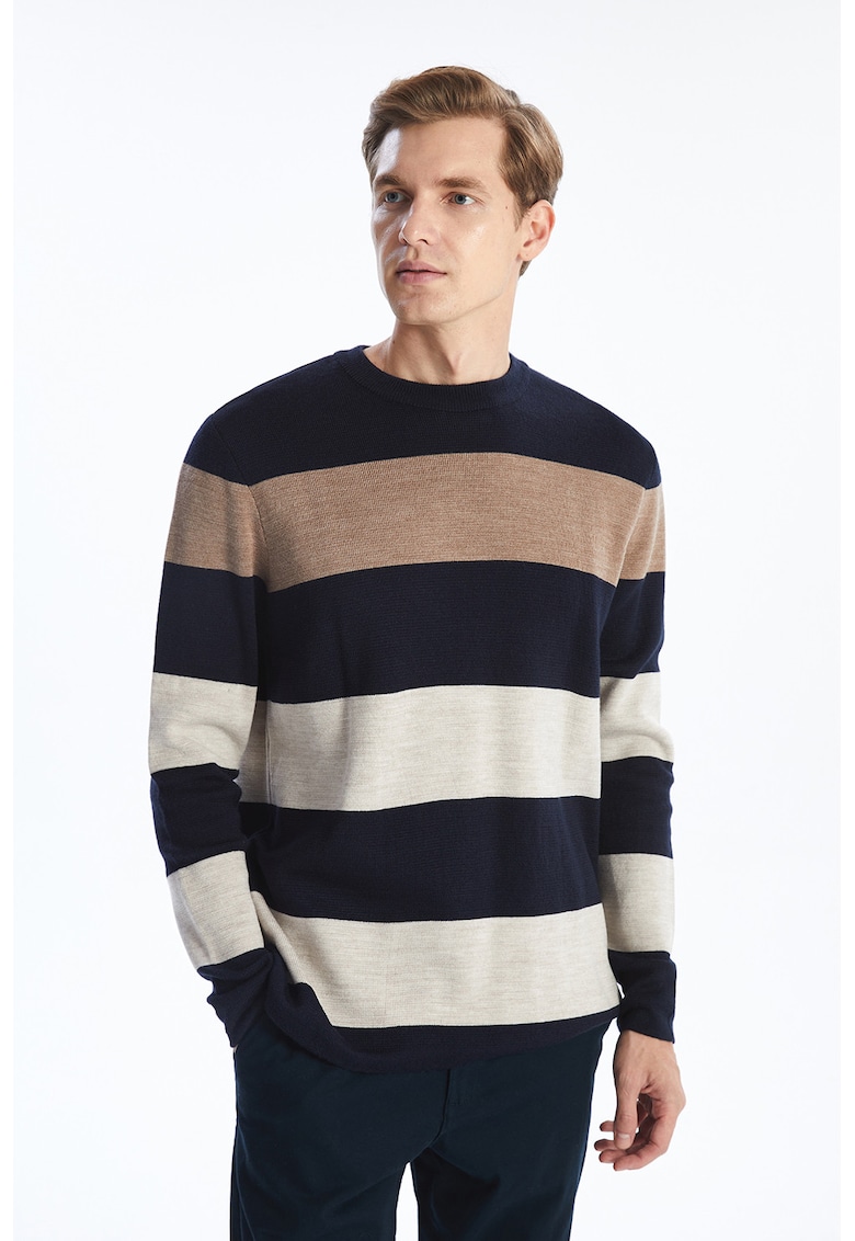 - maro deschis Imprimeu: dungi Material: bumbac Croiala: regular fit Sistem inchidere: fara inchidere Model: decolteu la baza gatului Decolteu: striat Lungime maneca: maneca lunga Compozitie Exterior: 100% bumbac