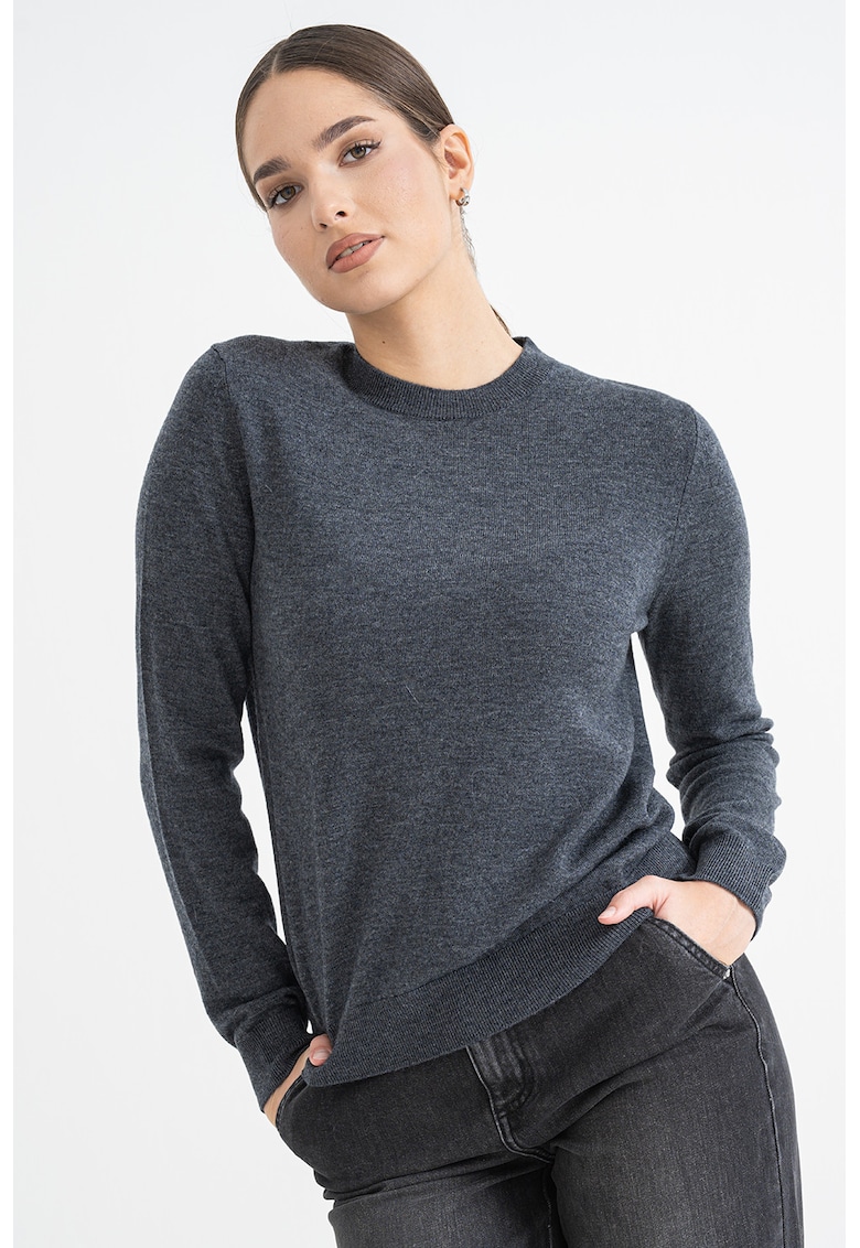 Caracteristici Tip produs: pulover Culoare: gri inchis Imprimeu: uni Material: lana Model: decolteu la baza gatului Croiala: regular fit Sistem inchidere: fara inchidere Lungime maneca: maneca lunga Compozitie Exterior: 100% lana Info model Modelul poarta un produs de marimea S. Marimi model: 176 cm inaltime