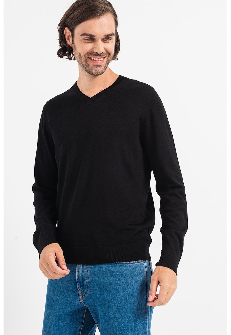 Caracteristici Culoare: negru Imprimeu: uni Material: lana Sistem inchidere: fara inchidere Model: in v Lungime maneca: maneca lunga Compozitie Exterior: 100% lana virgina Info model Modelul poarta un produs de marimea M. Marimi model: 195 cm inaltime