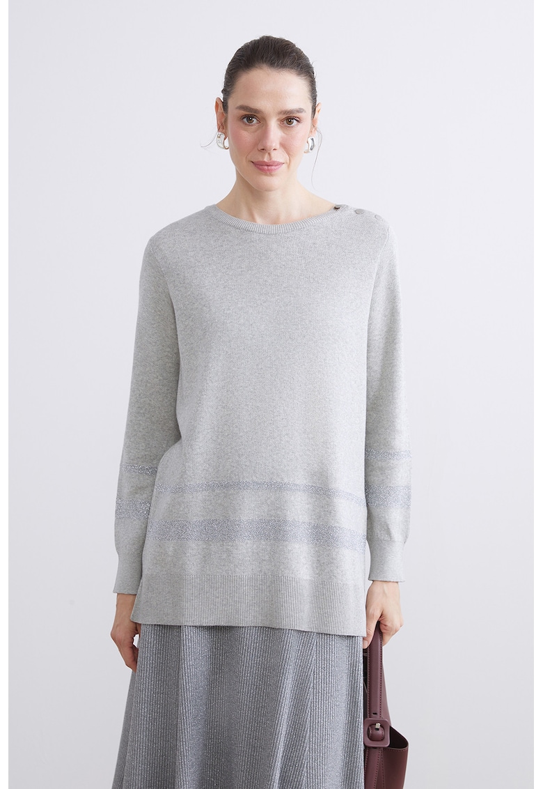 Caracteristici Tip produs: pulover Culoare: gri deschis melange Imprimeu: uni Material: bumbac