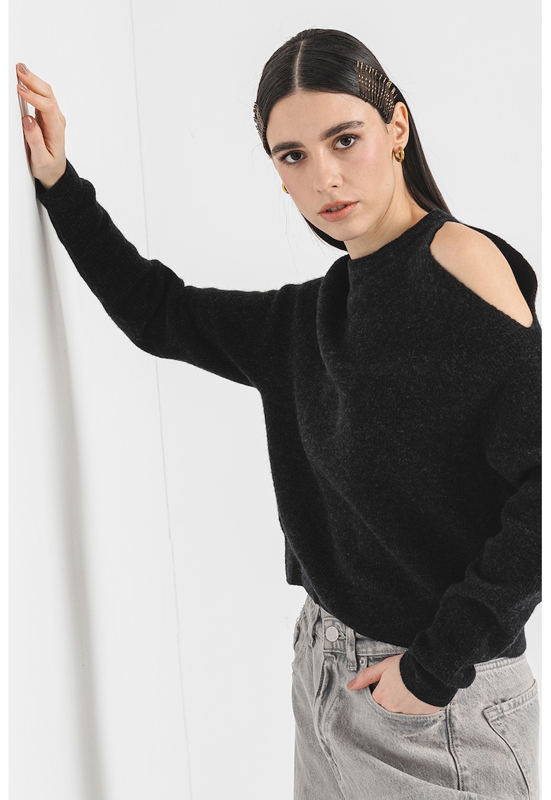 Caracteristici Tip produs: pulover Culoare: negru Imprimeu: uni Material: lana