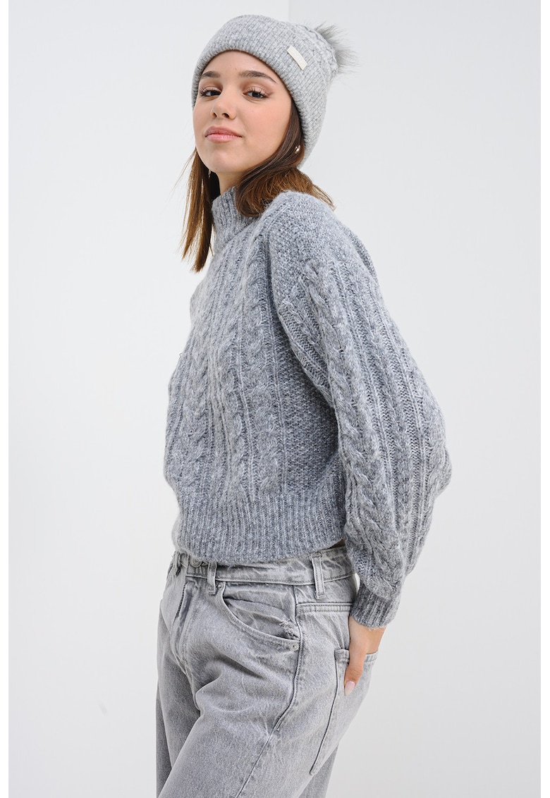 - acril Model: guler inalt Croiala: regular fit Sistem inchidere: fara inchidere Decolteu: striat Lungime maneca: maneca lunga Tip maneca: ampla Detalii: torsade Compozitie Exterior: 50% poliester reciclat