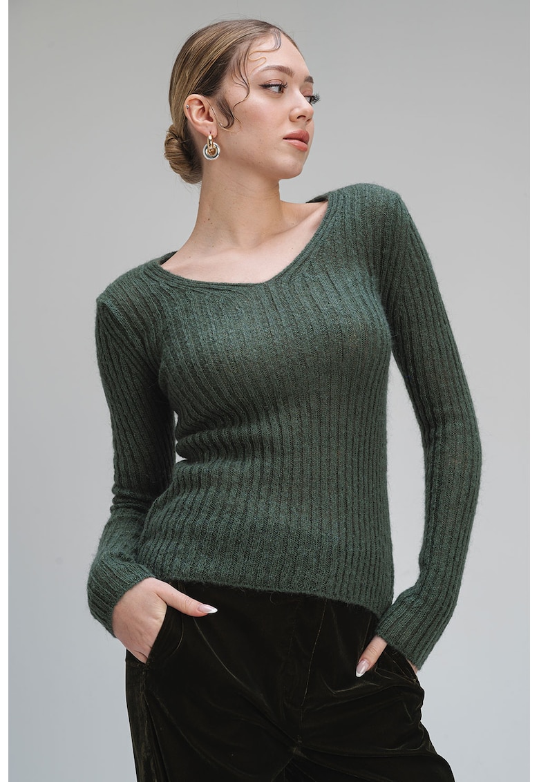 Caracteristici Tip produs: pulover Culoare: verde marin Imprimeu: uni Material: lana