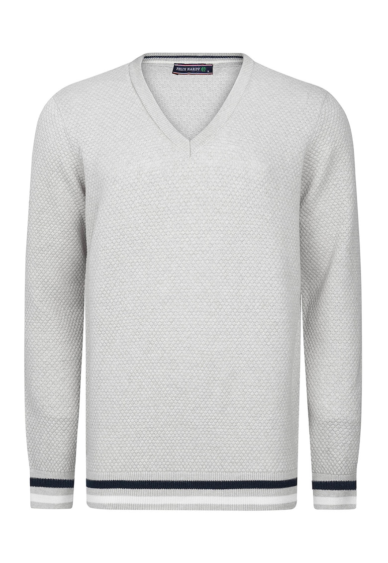 - gri deschis melange Imprimeu: uni Material: bumbac Croiala: regular fit Sistem inchidere: fara inchidere Model: in v Lungime maneca: maneca lunga Detalii: terminatii contrastante Compozitie Exterior: 100% bumbac