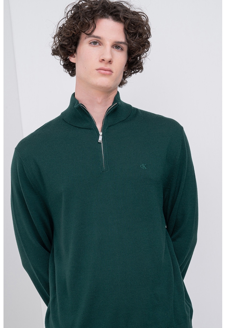 Caracteristici Culoare: verde englez Imprimeu: uni Material: lana Croiala: regular fit Sistem inchidere: fara inchidere Model: guler inalt Lungime maneca: maneca lunga Detalii: fenta cu fermoar Compozitie Exterior: lana 100% Info model Modelul poarta un produs de marimea L. Marimi model: 189 cm inaltime