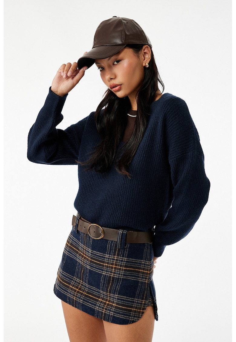 Caracteristici Tip produs: pulover Culoare: bleumarin Imprimeu: uni Material: poliester