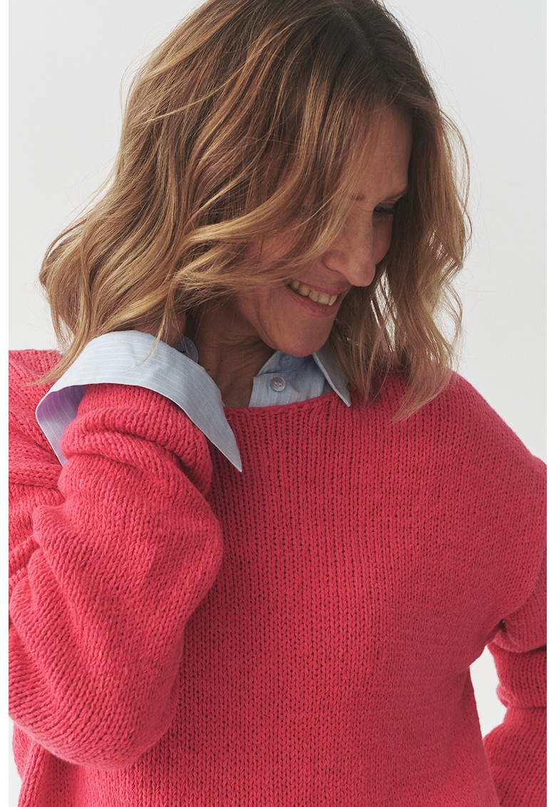Caracteristici Tip produs: pulover Culoare: roz aprins Imprimeu: uni Material: bumbac