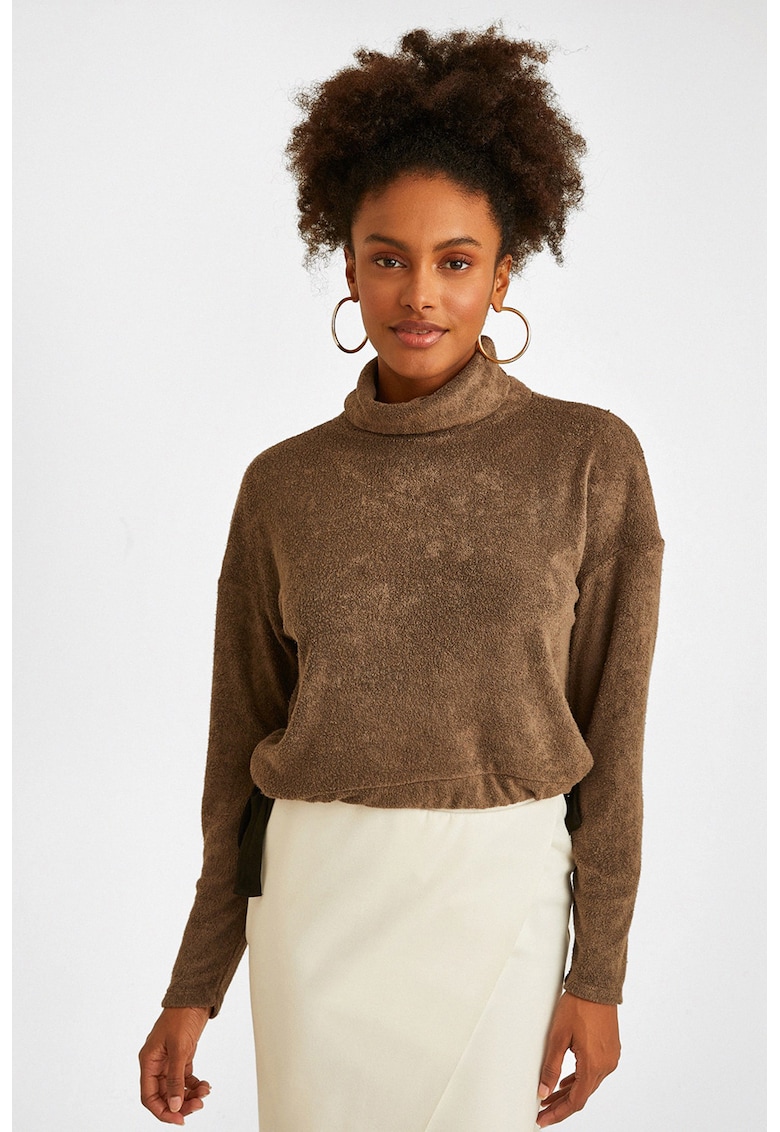 Caracteristici Tip produs: pulover Culoare: maro fango Imprimeu: uni Material: poliester