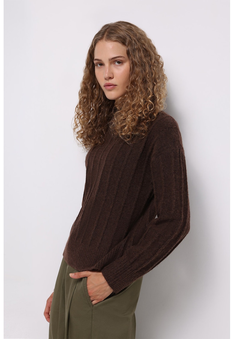 Caracteristici Tip produs: pulover Culoare: maro inchis Imprimeu: uni Material: poliester