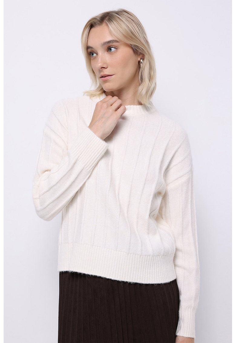 Caracteristici Tip produs: pulover Culoare: alb murdar Imprimeu: uni Material: poliester