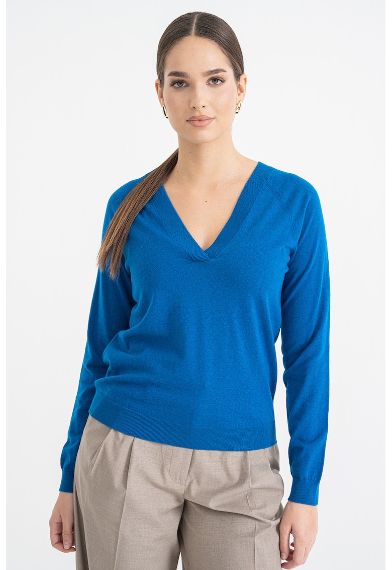 Caracteristici Tip produs: pulover Culoare: albastru deschis Imprimeu: uni Material: bumbac