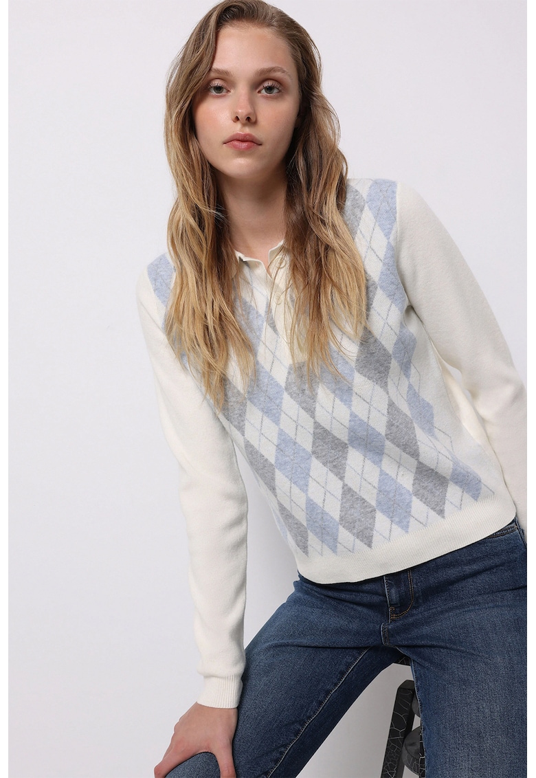 - acril Croiala: slim fit Sistem inchidere: fara inchidere Decolteu: polo Lungime maneca: maneca lunga Detalii: fenta cu nasturi Compozitie Exterior: 46% acrilic