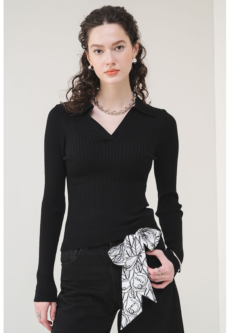 Caracteristici Tip produs: pulover Culoare: negru Imprimeu: uni Material: sintetic
