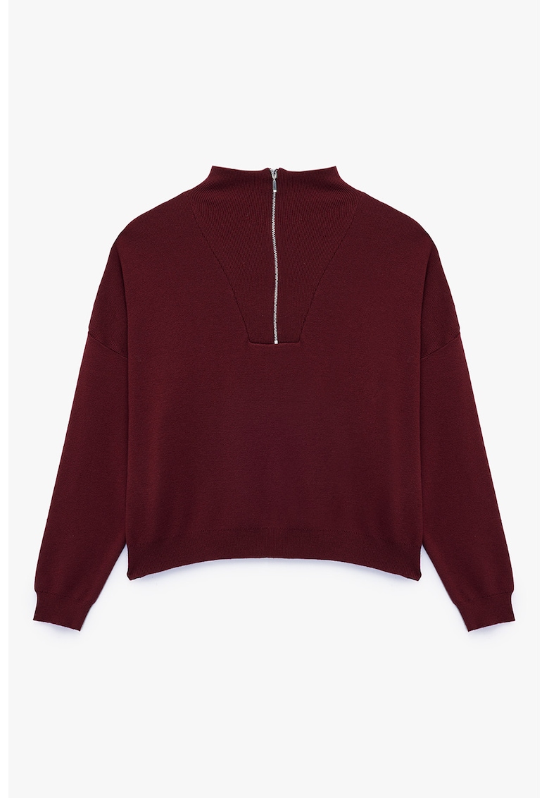 Caracteristici Tip produs: pulover Culoare: rosu inchis Imprimeu: uni Material: poliester