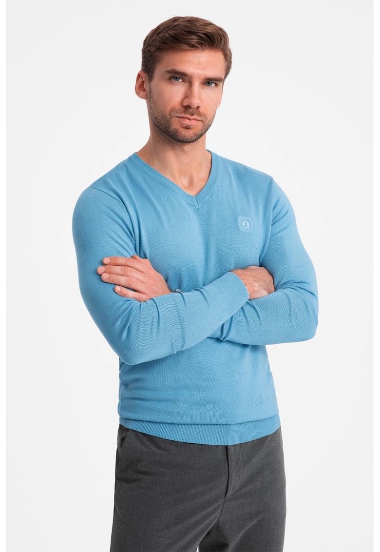 Caracteristici Culoare: albastru azur Imprimeu: uni Material: sintetic Croiala: slim fit Sistem inchidere: fara inchidere Model: in v Lungime maneca: maneca lunga Detalii: material tricotat fin Compozitie Exterior: exterior: 59.5% bumbac