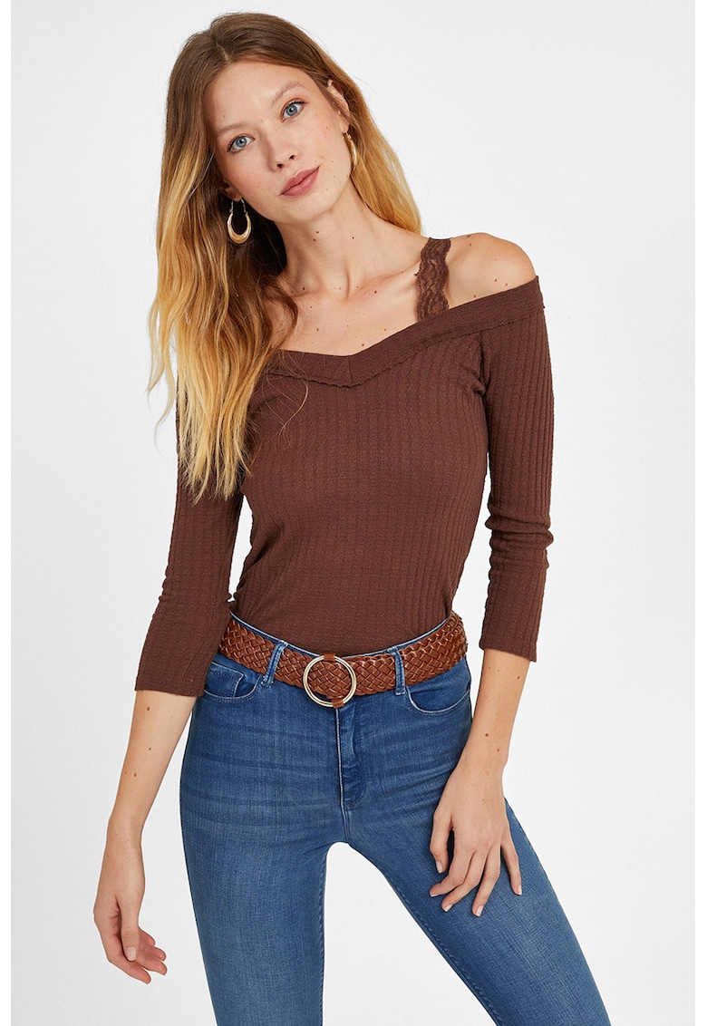 - bumbac Model: in v Croiala: slim fit Sistem inchidere: fara inchidere Decolteu: pe umar Lungime maneca: maneca trei sferturi Compozitie Exterior: 50% bumbac