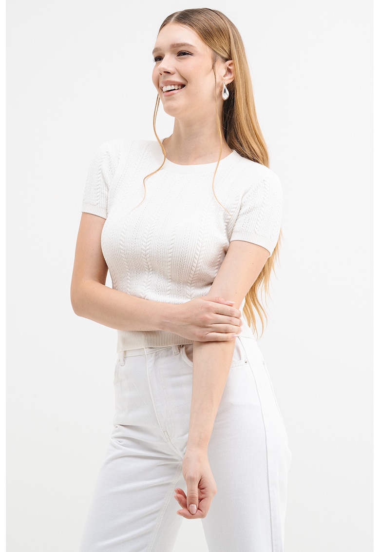 Caracteristici Tip produs: pulover Culoare: alb Imprimeu: uni Material: poliester Model: decolteu la baza gatului Croiala: slim fit Lungime maneca: maneca scurta Compozitie Exterior: 82% poliester