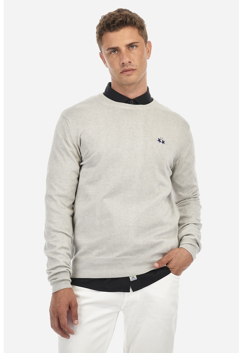 - lana Croiala: slim fit Sistem inchidere: fara inchidere Model: decolteu la baza gatului Decolteu: striat Lungime maneca: maneca lunga Detalii: detaliu cu logo Compozitie Exterior: 85% bumbac
