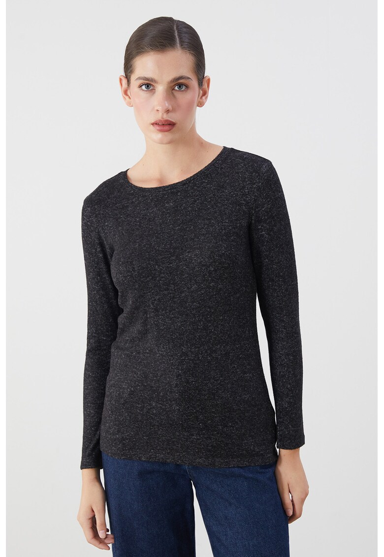 Caracteristici Tip produs: pulover Culoare: negru stins Imprimeu: uni Material: viscoza Model: rotund Croiala: slim fit Sistem inchidere: fara inchidere Decolteu: rotund Lungime maneca: maneca lunga Compozitie Exterior: 81% viscoza