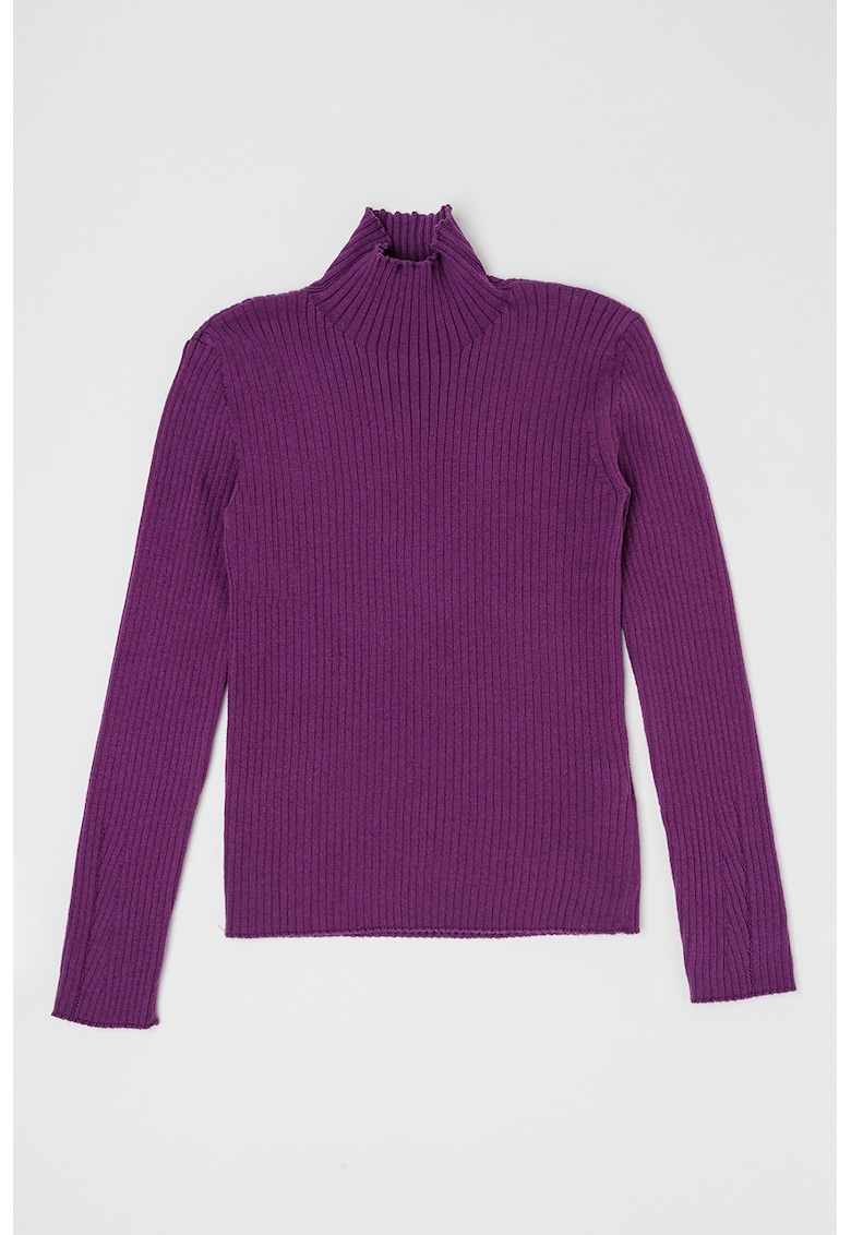 - acril Croiala: slim fit Imprimeu: uni Guler: guler inalt Lungime maneca: maneca lunga Detalii: aspect striat Sistem inchidere: fara inchidere Colectie: toamna