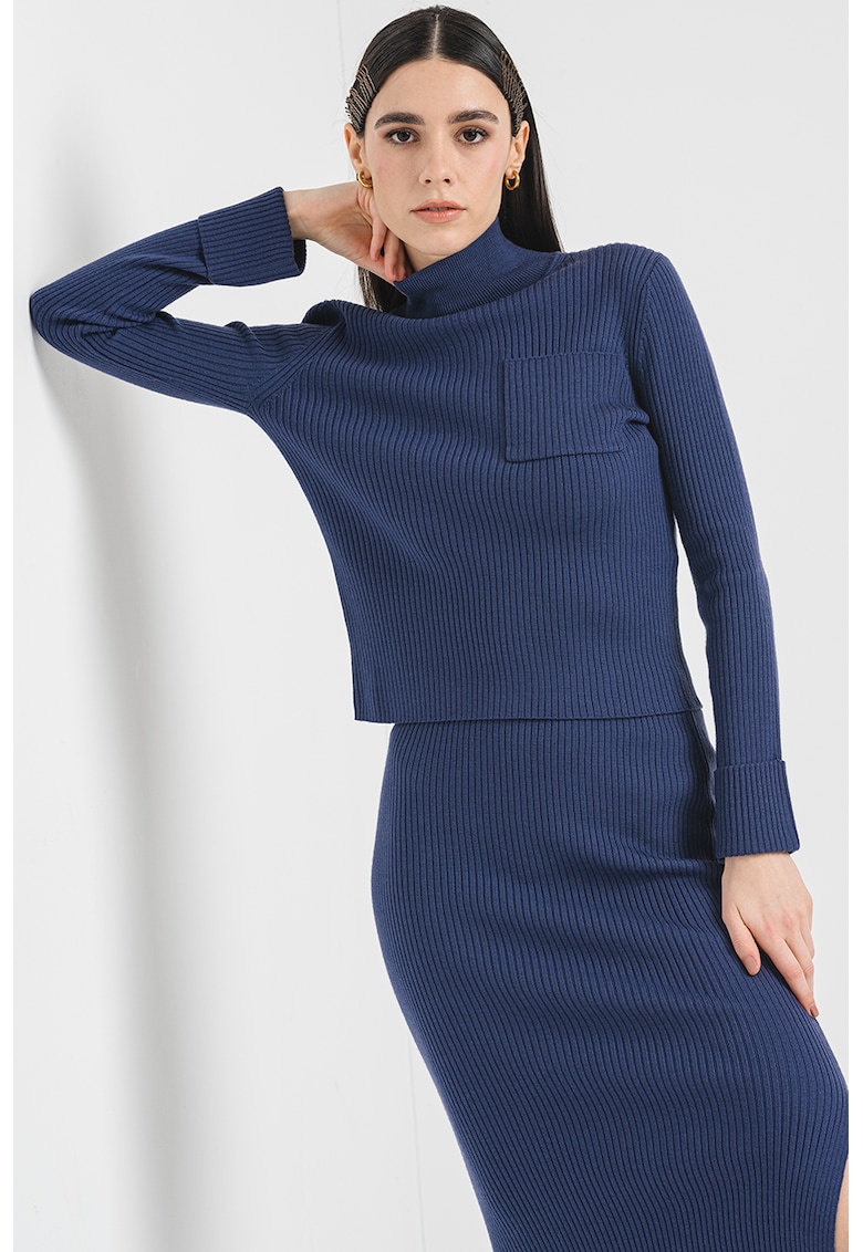 Caracteristici Tip produs: pulover Culoare: violet aubergine Imprimeu: uni Material: lana Croiala: slim fit Sistem inchidere: fara inchidere Lungime maneca: maneca lunga Guler: inalt Compozitie Exterior: 100% lana Info model Modelul poarta un produs de marimea S. Marimi model: 177 cm inaltime