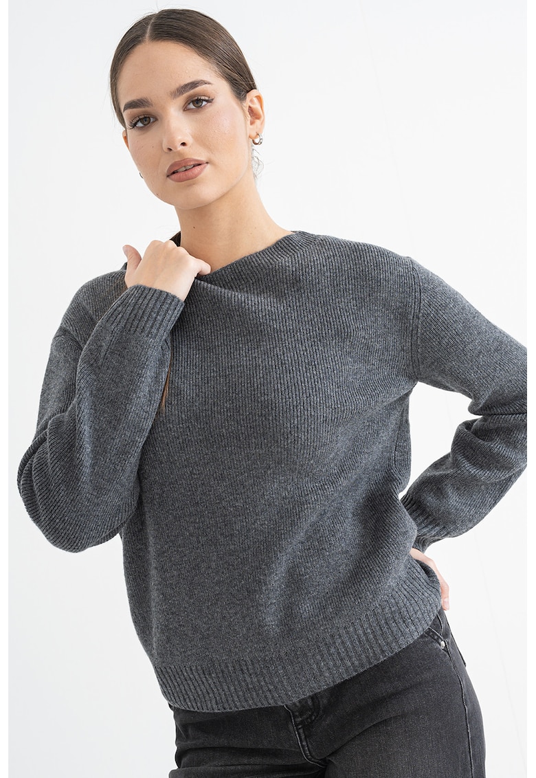 Caracteristici Tip produs: pulover Culoare: gri inchis Imprimeu: uni Material: lana Model: barcuta Croiala: regular fit Sistem inchidere: fara inchidere Lungime maneca: maneca lunga Tip maneca: ampla Compozitie Exterior: 95% lana