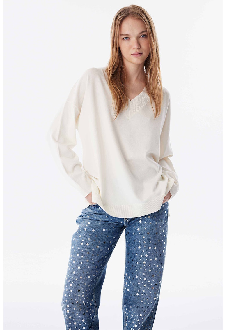 Caracteristici Tip produs: pulover Culoare: alb fildes Imprimeu: uni Material: sintetic