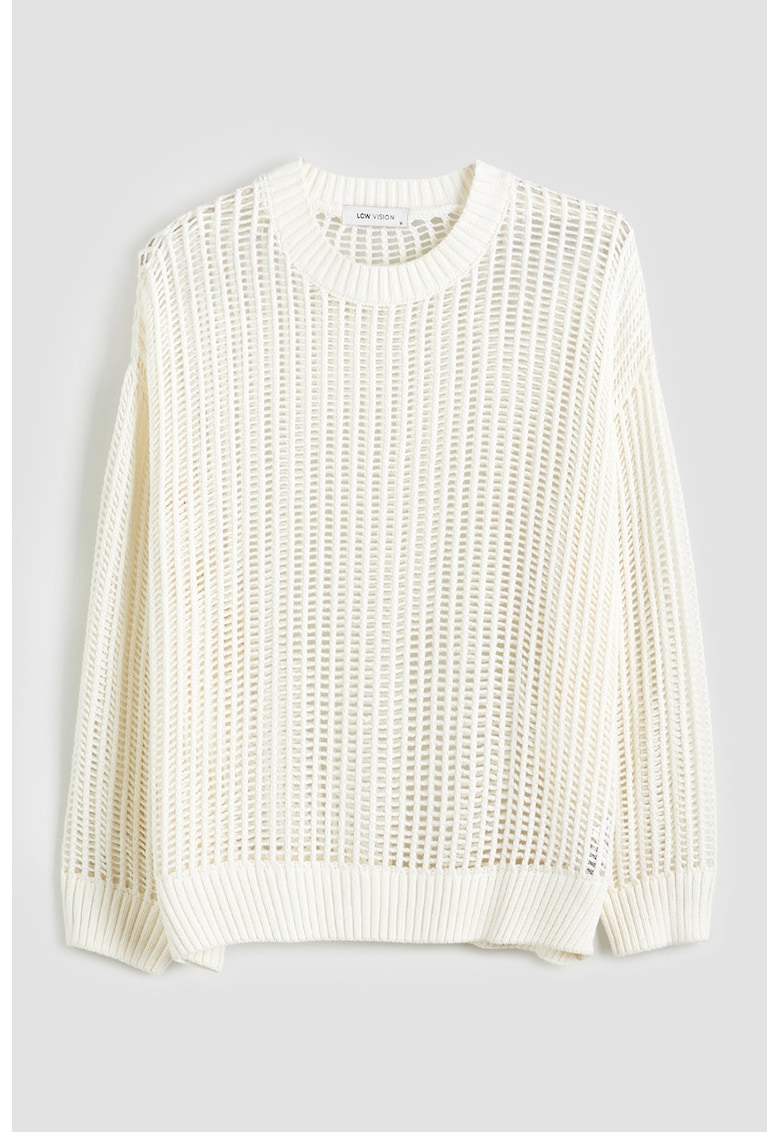- tricot Model: decolteu la baza gatului Croiala: supradimensionat Sistem inchidere: fara inchidere Lungime maneca: maneca lunga Detalii: model cu perforatii Compozitie Exterior: 100% bumbac