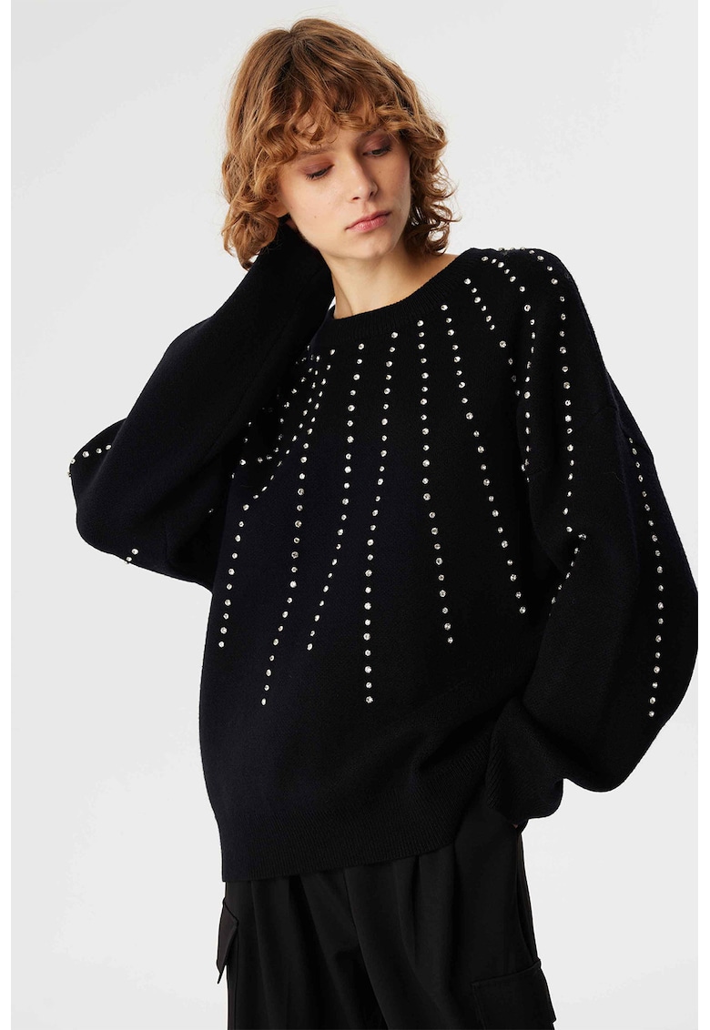 - tricot Model: decolteu la baza gatului Croiala: supradimensionat Sistem inchidere: fara inchidere Decolteu: la baza gatului Lungime maneca: maneca lunga Detalii: strasuri Compozitie Exterior: 50% viscoza