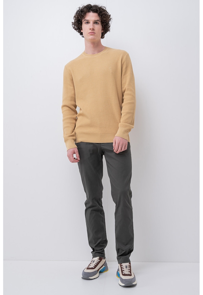 Caracteristici Culoare: galben inchis Imprimeu: logo Material: bumbac Croiala: slim fit Sistem inchidere: fara inchidere Model: decolteu la baza gatului Lungime maneca: maneca lunga Compozitie Exterior: 100% bumbac Info model Modelul poarta un produs de marimea M. Marimi model: 189 cm inaltime