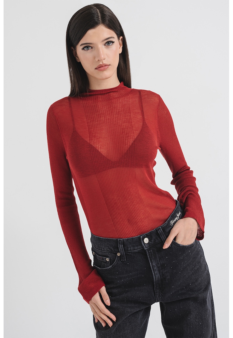 Caracteristici Tip produs: pulover Culoare: rosu inchis Imprimeu: uni Material: poliamida