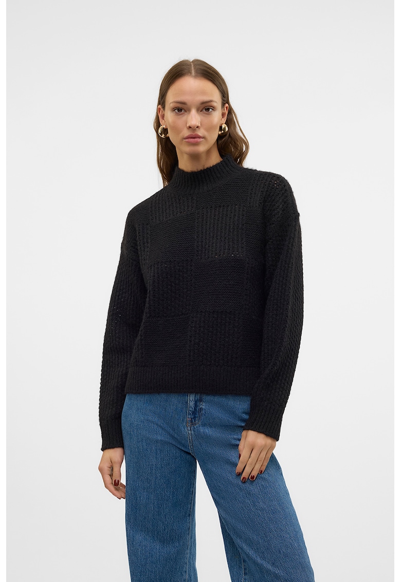 Caracteristici Tip produs: pulover Culoare: negru Imprimeu: uni Material: poliester Model: guler inalt Croiala: regular fit Sistem inchidere: fara inchidere Decolteu: guler inalt
