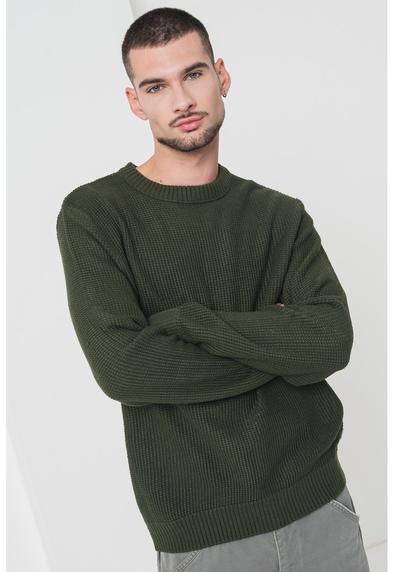 Caracteristici Culoare: verde marin Imprimeu: uni Material: acril Croiala: regular fit Sistem inchidere: fara inchidere Model: decolteu la baza gatului Lungime maneca: maneca lunga Compozitie Exterior: 100% acrilic Info model Modelul poarta un produs de marimea M. Marimi model: 190 cm inaltime