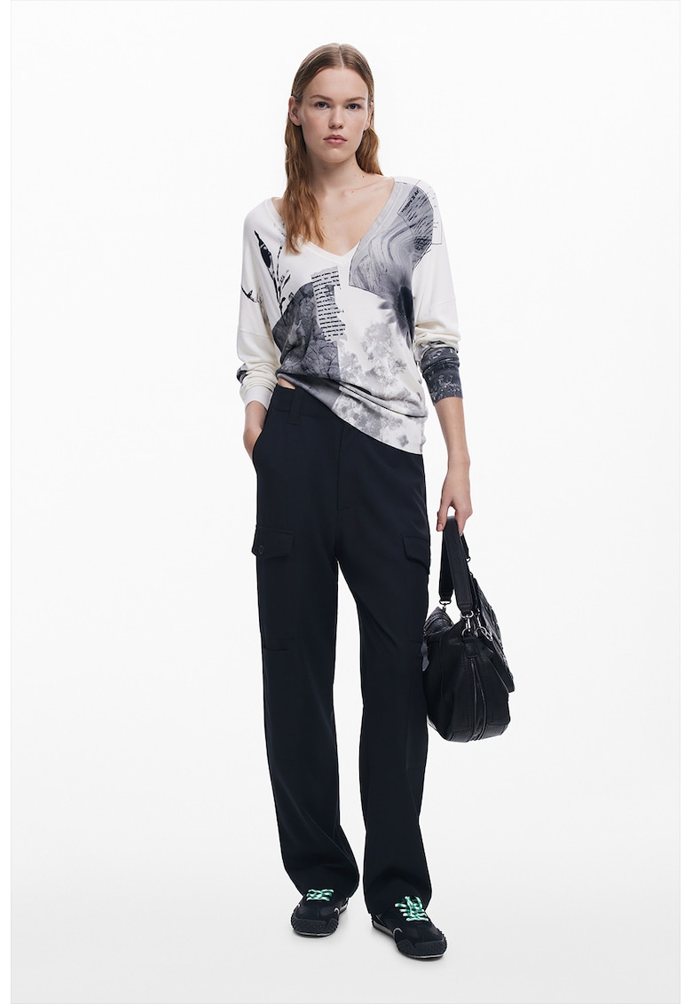- poliamida Model: in v Croiala: regular fit Sistem inchidere: fara inchidere Decolteu: in v Lungime maneca: maneca lunga Compozitie Exterior: 80% viscoza