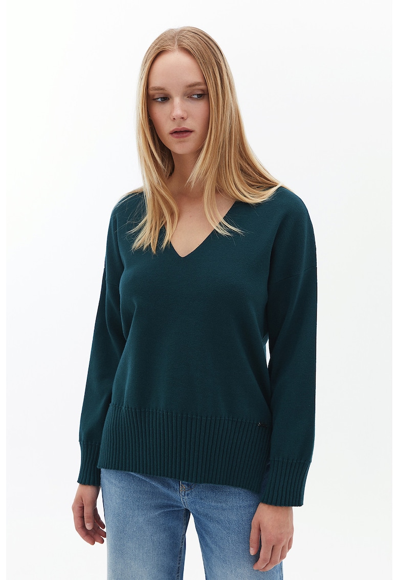 Caracteristici Tip produs: pulover Culoare: verde englez Imprimeu: uni Material: poliester
