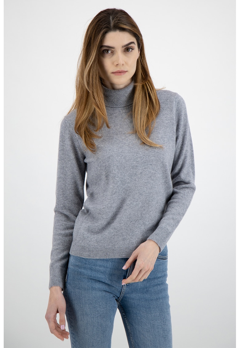 Caracteristici Culoare: gri deschis melange Imprimeu: uni Stil: casual Material: casmir Model: guler inalt Croiala: regular fit Lungime maneca: maneca lunga Inchidere: fara inchidere Compozitie Exterior: 100% casmir Info model Modelul poarta un produs de marimea S. Marimi model: 179 cm inaltime